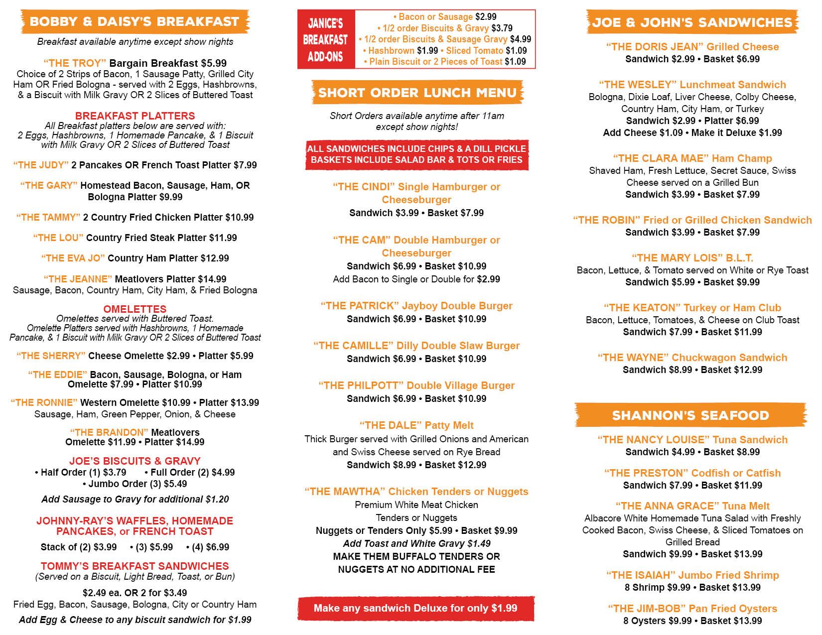 Show Night & Holiday Prices for Plate Lunches & Suppers